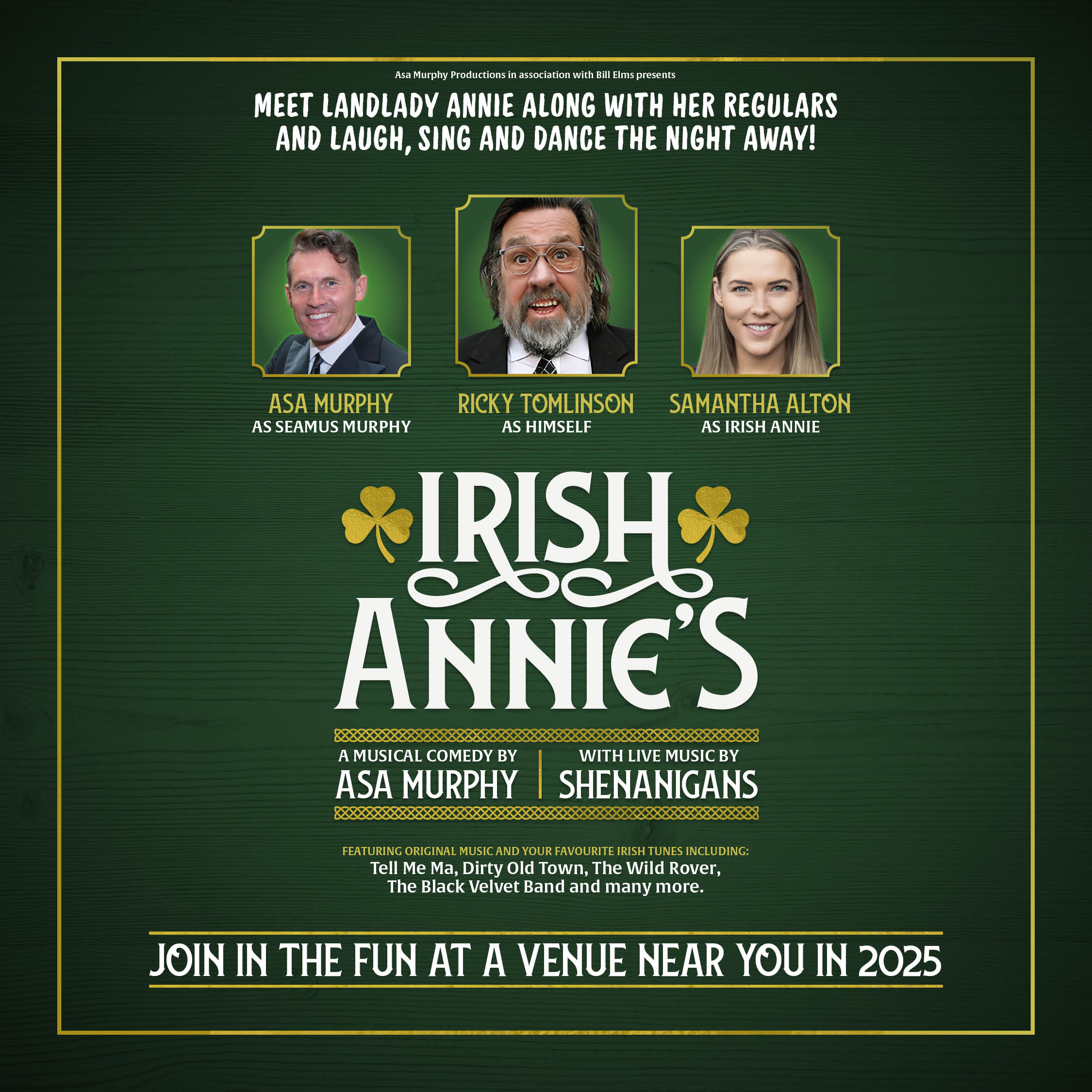 Irish Annie's is back on a UK tour in May & June 2025 with a new version and new cast members, we will start announcing dates each day so keep posted. We are very excited to be playing some new large venues on the tour too.